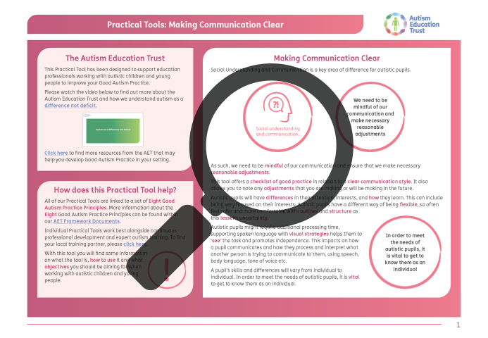 This tool is a checklist of Good Autism Practice when communicating with an autistic pupil.